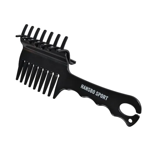Flätningskam med klassisk stor hårklämma. Perfekt verktyg för att enkelt hålla manen på plats vid flätning.